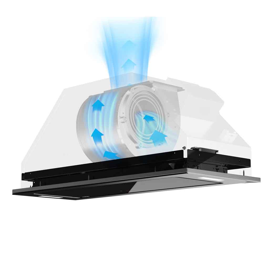 جذابترین ویژگی این مدل، قابلیت کنترل با حرکت دست (موشن) است. زمانی که دستان شما آغشته به مواد غذایی است، بدون نیاز به لمس صفحه، تنها با یک حرکت دست میتوانید هود را روشن یا تنظیم کنید. این صفحه کلید تمام لمسی، همراه با یک ریموت کنترل، کنترل کامل هود را در هر نقطه از آشپزخانه در اختیار شما قرار میدهد.