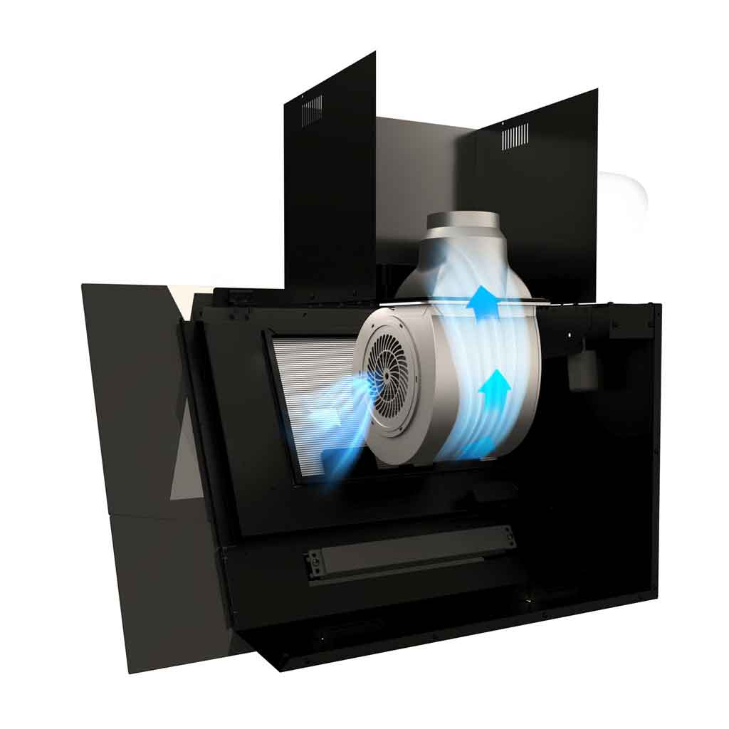 در هسته این طراحی هوشمند، یک موتور فلزی توربو ۴ دور با قدرت مکش ۷۰۰ تا ۹۰۰ متر مکعب در ساعت جای گرفته که با قدرتی فوقالعاده، هر آلودگی را از هوا زدوده و آرامش را به فضای آشپزی بازمیگرداند. طراحی ویژه موتور باعث شده تا سطح صدای آن تنها بین ۴۸ تا ۵۸ دسیبل باشد و در حین کارکرد قدرتمند، آرامش آشپزخانه شما را برهم نزند.