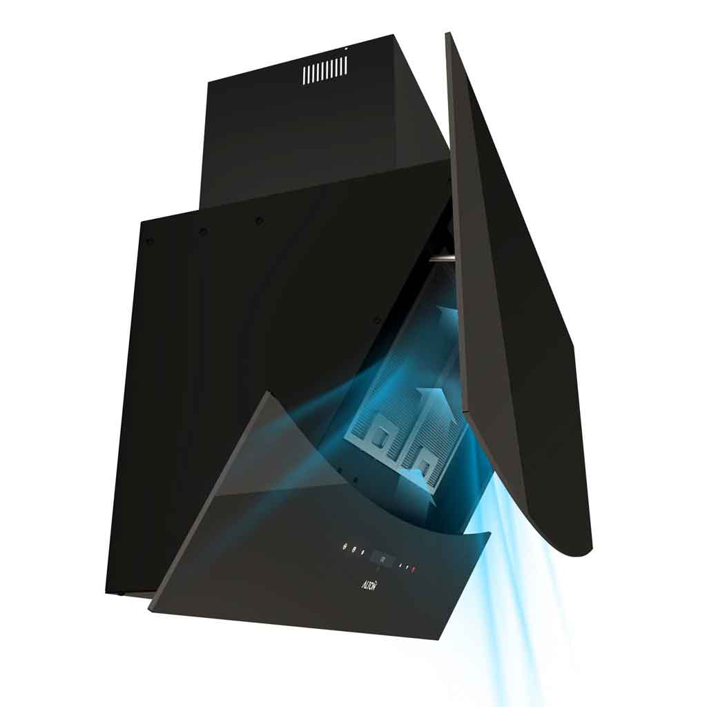 بدون شک، بارزترین ویژگی این هود، درب اتوماتیک تمام برقی آن است. با یک لمس ساده روی کلید پاور، درب هود به نرمی و بدون هیچ صدایی باز میشود و دنیایی از امکانات در مقابل چشمان شما قرار میگیرد. این ویژگی نه تنها حس و هوایی از آینده را به آشپزخانه شما میآورد، بلکه یک مزیت بهداشتی کلیدی نیز محسوب میشود؛ دیگر اثری از لکههای چربی دست بر روی شیشهی بینقص آن باقی نمیماند و تمیزکاری هود به سادهترین شکل ممکن انجام میشود.