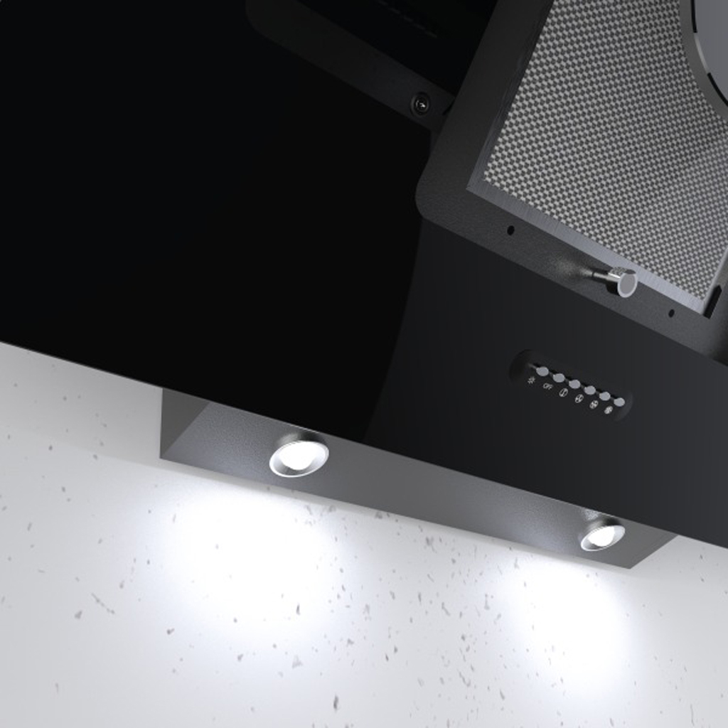 این هود با نمای شیشه سکوریت مشکی، جلوهای ساده و درعینحال شیک به فضای آشپزخانه میبخشد. این شیشه علاوه بر زیبایی، در برابر حرارت و ضربه بسیار مقاوم است و دوام بالایی دارد. عرض 90 سانتیمتری آن، پوشش مناسبی برای بیشتر اجاقگازهای رایج فراهم میکند.