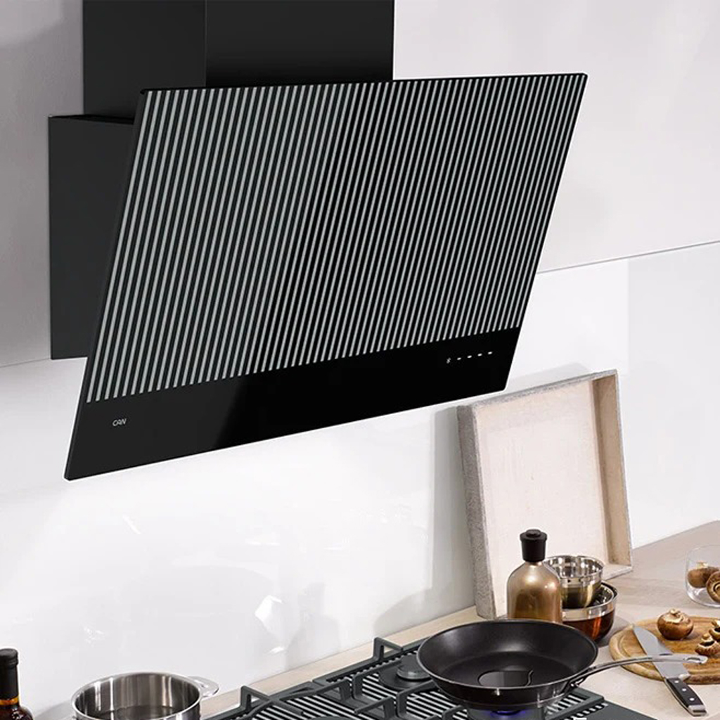 هود کن مدل لیناک مشکی با نمای شیشه سکوریت مشکی و خطوط سفید، طراحی مدرن و مینیمالیستی خود را به رخ میکشد. این مدل که در دسته هودهای شومینهای مورب قرار میگیرد، با عرض 90 سانتیمتری خود، نه تنها یک دستگاه تهویه کارآمد، بلکه بخشی از یک مجموعه هماهنگ در آشپزخانه شماست که قابلیت ست شدن با فر و اجاق گاز را دارد تا یک هارمونی بصری کامل ایجاد کند.
