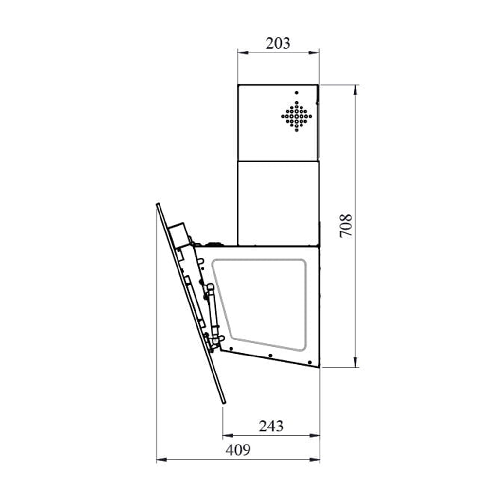این هود با سایز 90 سانتیمتر و طراحی مورب، یک بیانیه قدرتمند در دکوراسیون آشپزخانه شما محسوب میشود. خطوط زاویهدار و مدرن آن، حسی از پویایی و حرکت را به فضا میبخشد. رنگ مشکی عمیق و باشکوه آن، جلوهای لوکس و ماندگار ایجاد کرده و با هر سبک دکوراسیونی هماهنگ میشود.