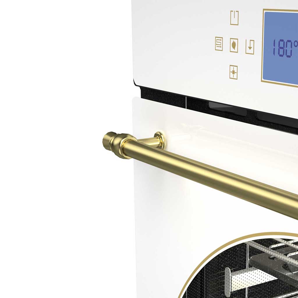 فر V306W با نمای شیشه سکوریت سفید و خطوط طلایی طراحی شده است. ظاهر کلاسیک و لوکس آن بهخوبی با کابینتهای آشپزخانه هماهنگ میشود. درب چهار جداره مجهز به آرامبند علاوه بر ایمنی، استفاده راحتتر و شیکتر را فراهم میکند.