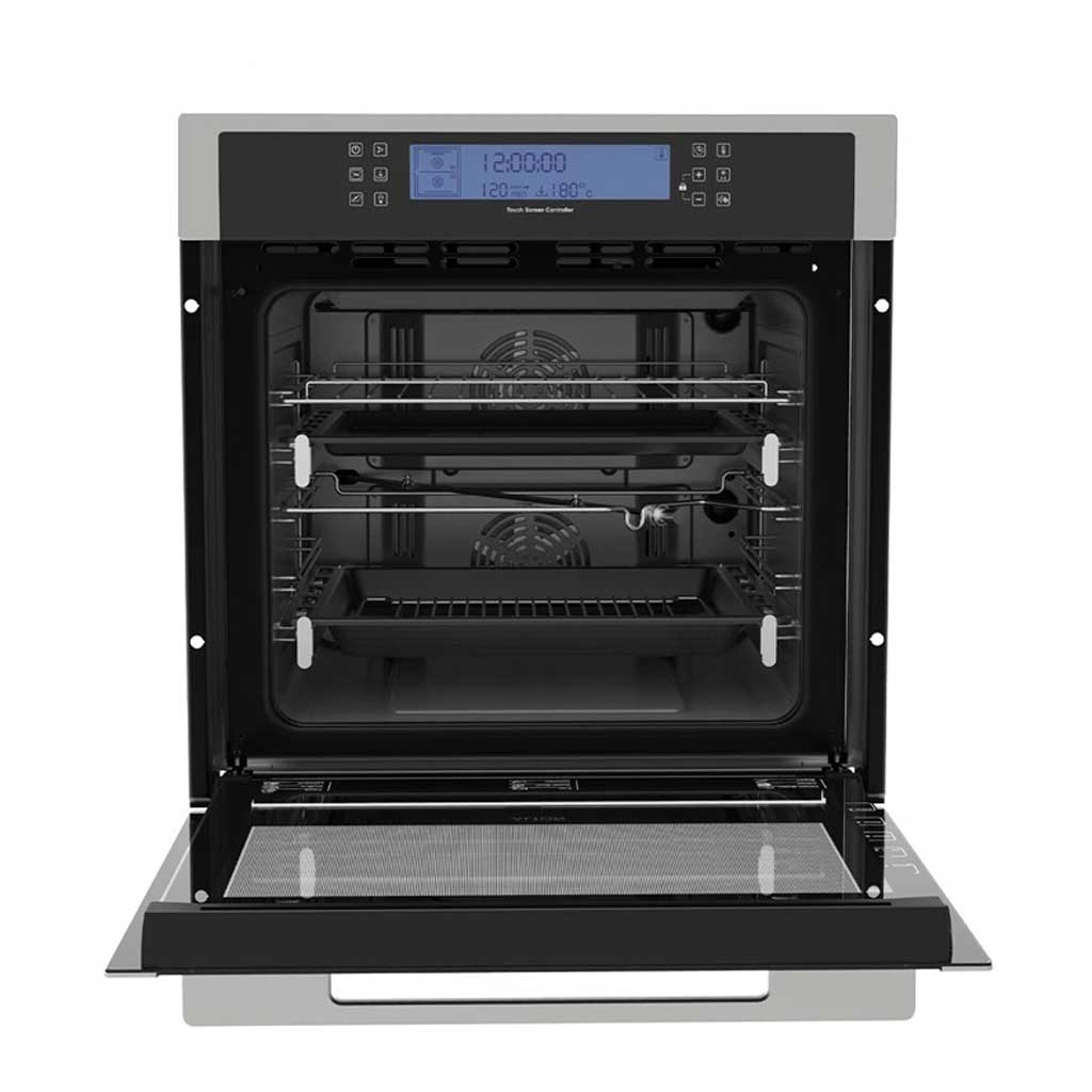 فر V402S با ترکیب شیشه مشکی و استیل ضد زنگ طراحی شده است. ظاهر مدرن و مقاوم آن بهخوبی با کابینتهای آشپزخانه هماهنگ میشود. صفحه لمسی دیجیتال و ریلهای تلسکوپی نیز استفاده راحتتر و حرفهایتر را فراهم میکنند.