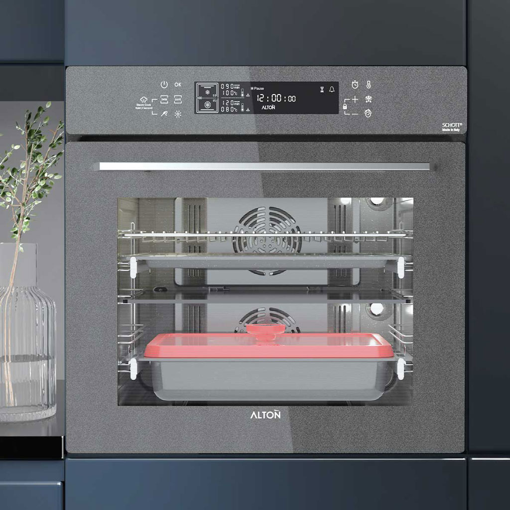در آشپزخانههای امروزی که زیبایی و کارایی در کنار هم معنا پیدا میکنند، فر توکار برقی مدل V550TG از برند معتبر آلتون با طراحی شیک و رنگ طوسی متالیک، گزینهای ایدهآل برای افرادی است که به دنبال دستگاهی با کیفیت بالا و امکانات متنوع هستند. فر آلتون مدل V550TG با حجم ۷۲ لیتر و ابعاد استاندارد ۶۰ سانتیمتر، برای خانوادههای با جمعیت متوسط تا بزرگ کاملاً مناسب بوده و به راحتی در کابینتهای آشپزخانه نصب میشود. بدنه با کیفیت و درب ۴ جداره جدا شونده، علاوه بر حفظ ایمنی و جلوگیری از اتلاف انرژی، امکان شستشوی آسان را نیز فراهم میکند.