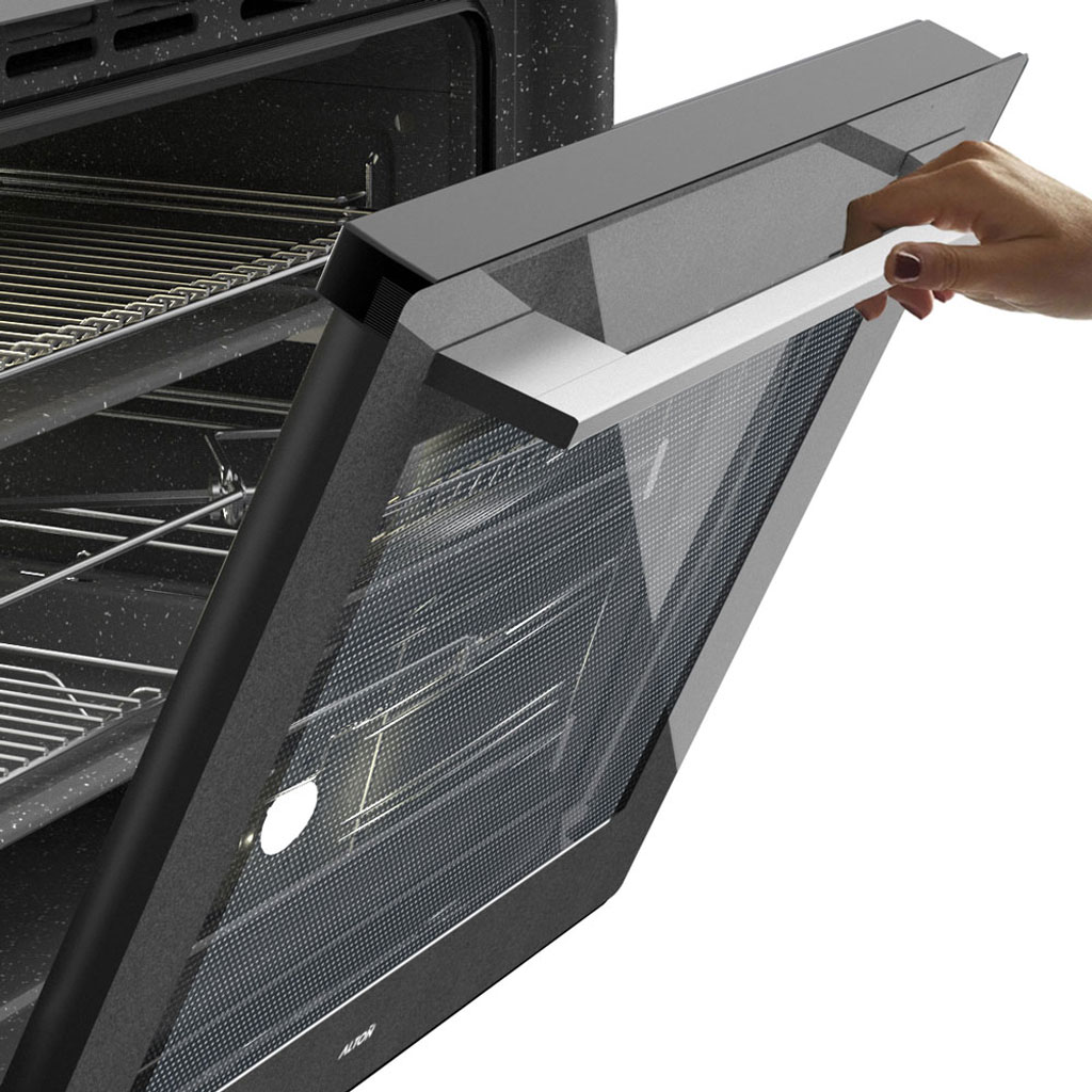فر آلتون مدل V550TG مجهز به صفحه نمایشگر دیجیتال از نوع LCD نگاتیو است که کار با فر را بسیار ساده و لذتبخش کرده است. چهار عدد ریل تلسکوپی امکان کشیدن آسان و ایمن سینیها را بدون نیاز به فشار فراهم میکنند و از افتادن ناگهانی ظروف داغ جلوگیری مینمایند. لولای آرامبند (Soft Close) نیز درب فر را به نرمی و بدون صدا و ضربه میبندد که برای آشپزخانههای مدرن که آرامش در آنها اهمیت دارد، یک مزیت ارزشمند است. حسگر پخت گوشت (Meat Probe) دمای داخلی غذا را اندازهگیری کرده و از پخت بیش از حد و خشک شدن آن جلوگیری میکند.