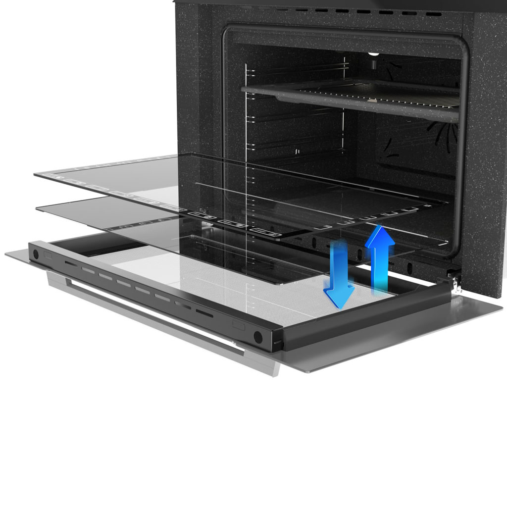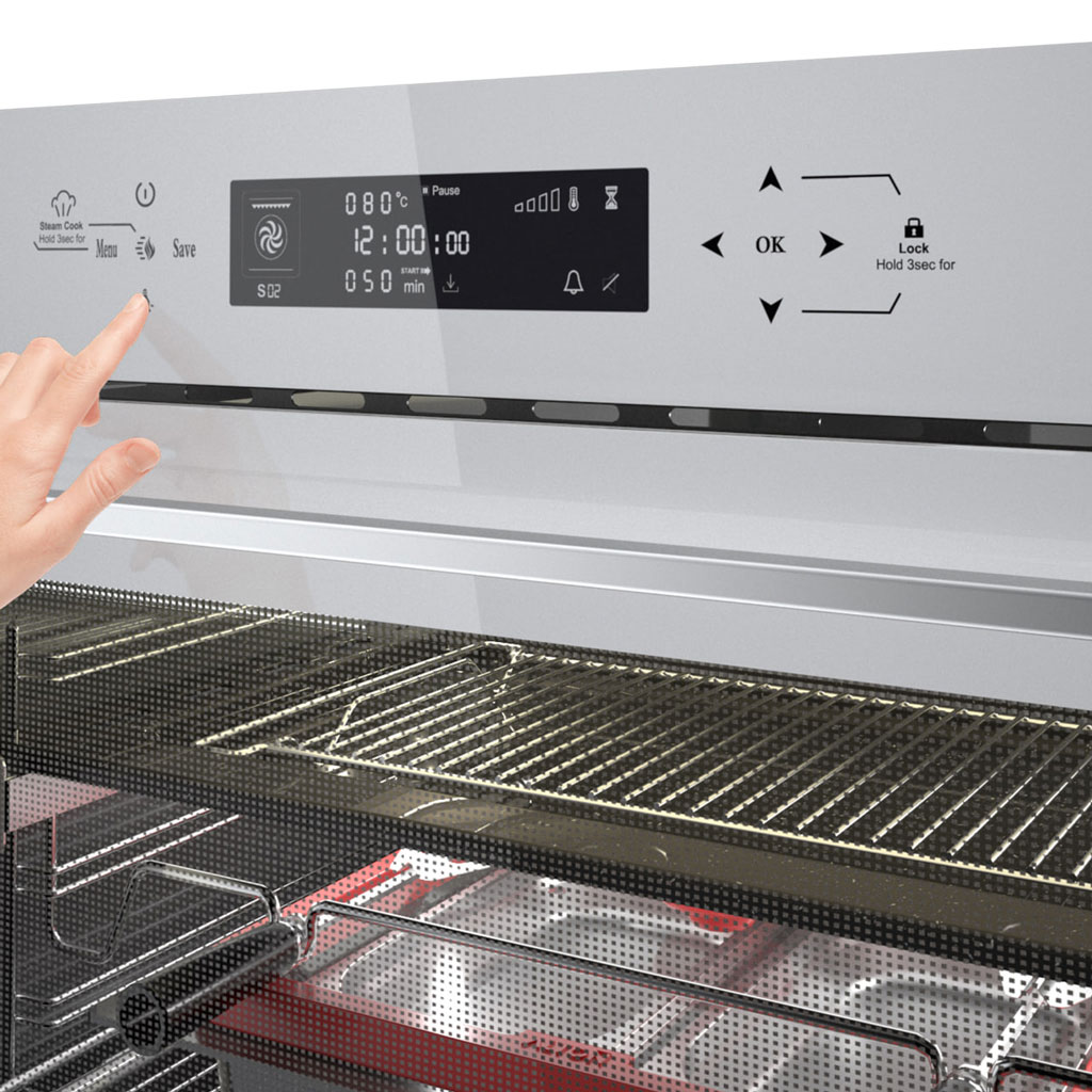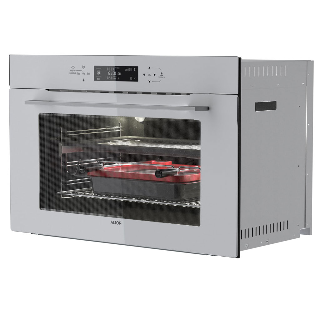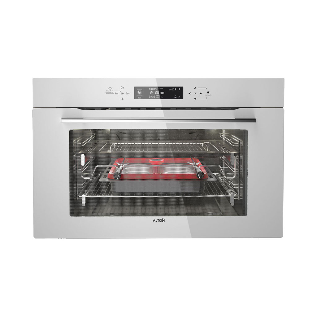 فر بخار پز آلتون مدل V905W دارای درب سه جداره جدا شونده، لولای آرام بند Soft Close, تایمر پیشرفته زمان پخت و مجهز به قفل کودک و برنامه یخ زدا می باشد.