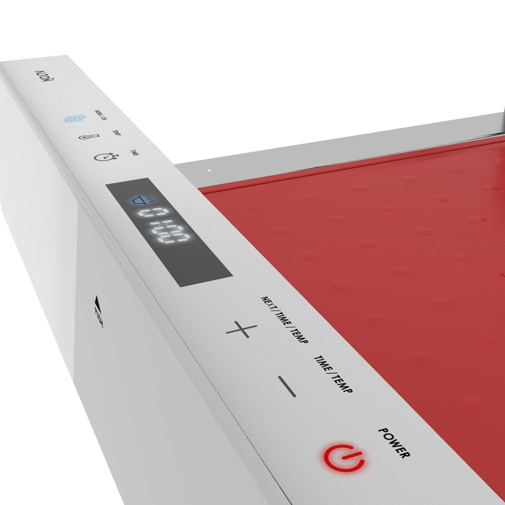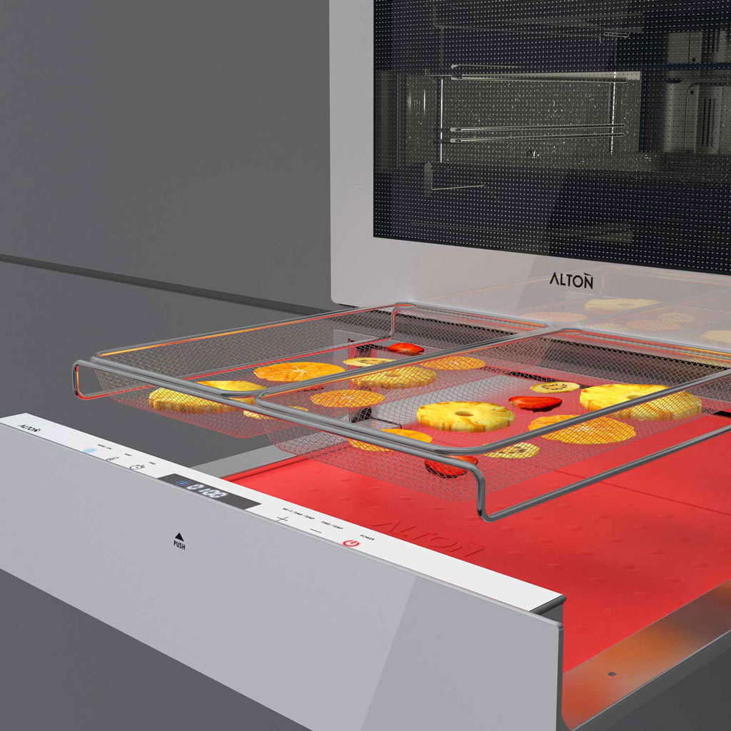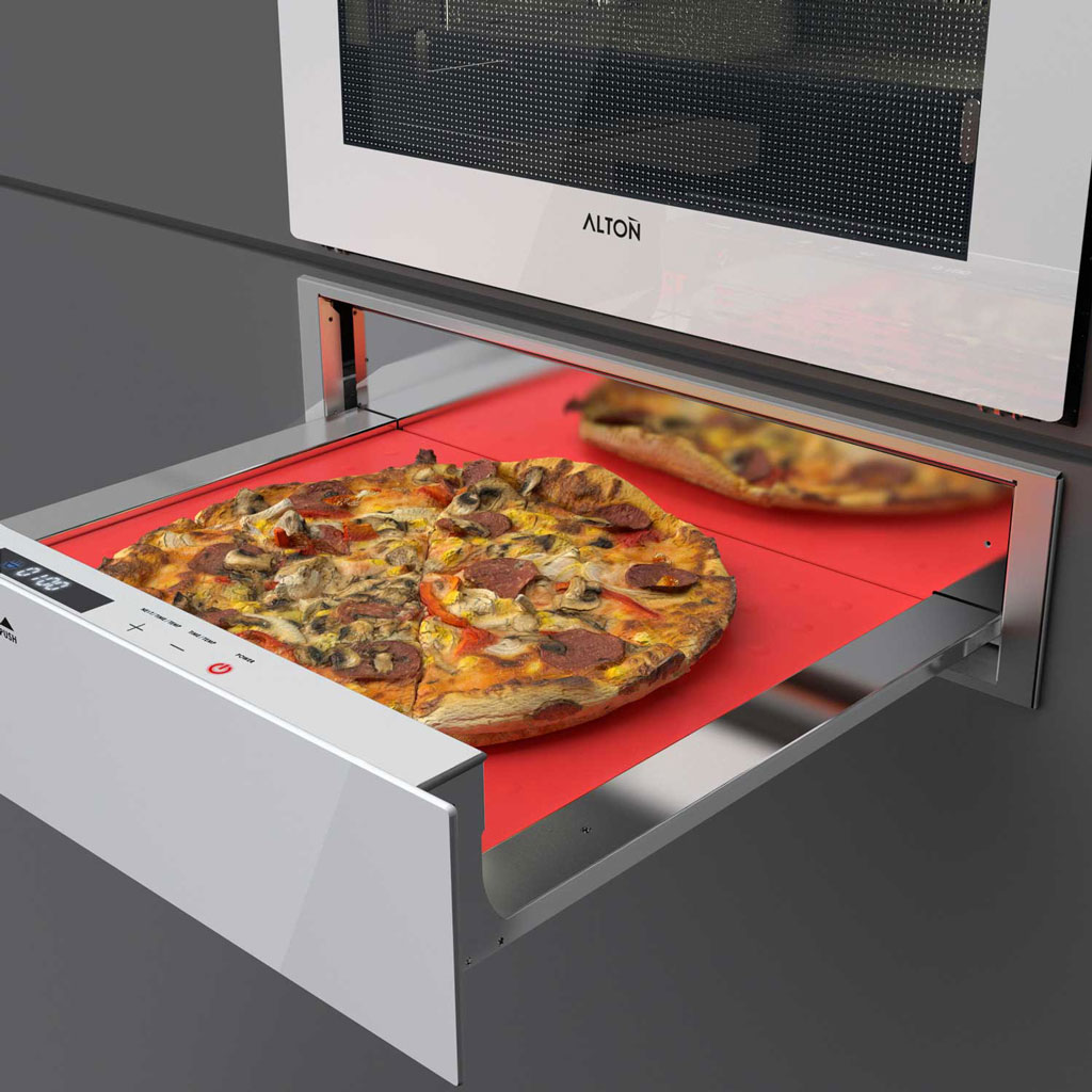 کشو گرمکن آلتون D500W با نمای شیشه سکوریت سفید طراحی شده و ظاهری مدرن و هماهنگ با سایر لوازم توکار آشپزخانه دارد. صفحه کنترل لمسی جلوهای مینیمال و کاربری آسان ایجاد کرده است.