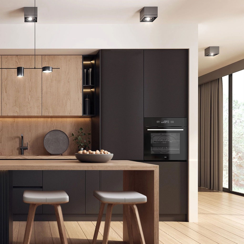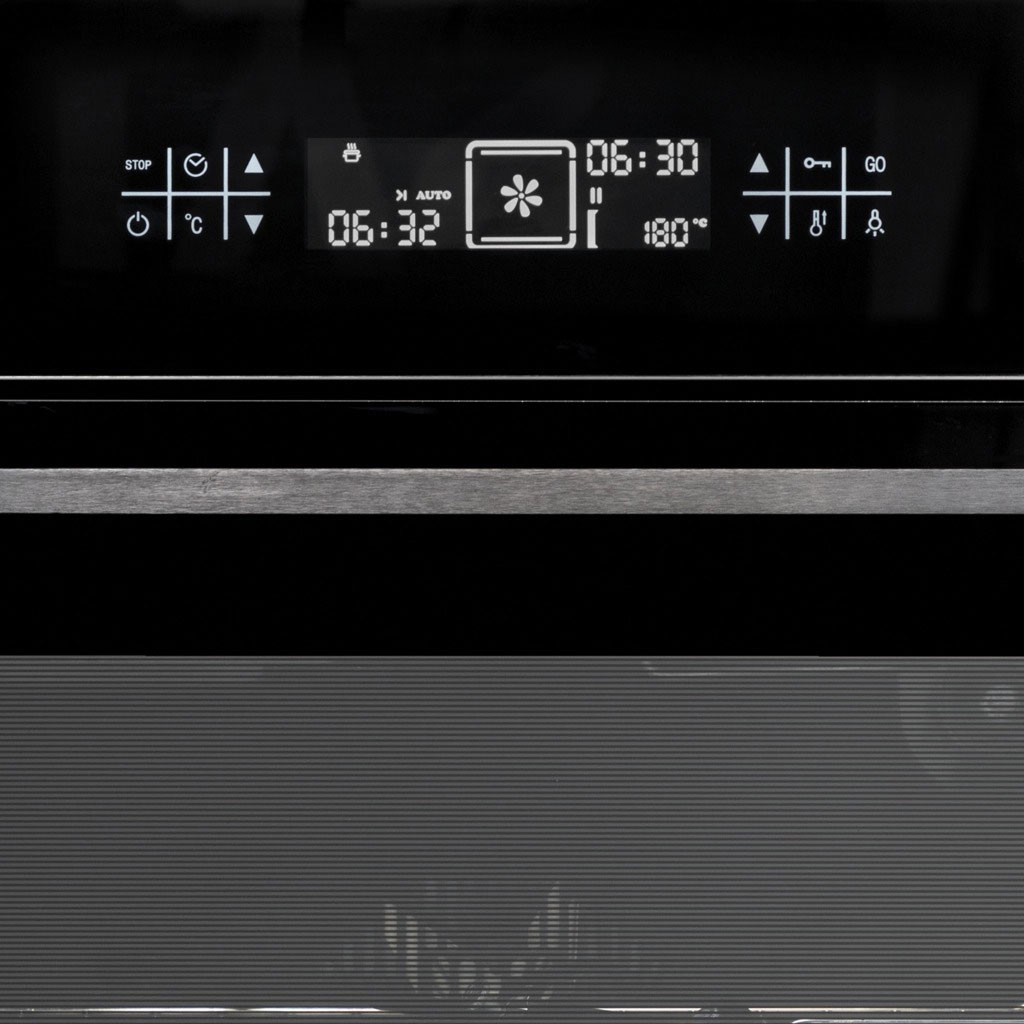 فر کن مدل E6598 با ترکیب شیشه مشکی براق و استیل ضد زنگ، جلوهای مدرن و لوکس به آشپزخانه میبخشد. طراحی مینیمال و استفاده از شیشه ۴ جداره علاوه بر زیبایی، ایمنی و مقاومت بالایی را تضمین میکند. پنل لمسی دیجیتال همراه با ولومهای کنترلی تجربهای کاربرپسند و حرفهای را فراهم میآورد. درب آرامبند و طراحی ارگونومیک دستگیرهها راحتی کاربری و ظرافت طراحی را نشان میدهد.
