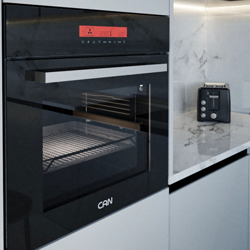 فر کن مدل E6599 با رنگ مشکی و ترکیب استیل ضد زنگ، جلوهای مدرن و لوکس به آشپزخانه میبخشد. نمایشگر لمسی با قابلیت تغییر رنگ، تجربهای متفاوت و جذاب برای کاربر ایجاد میکند. درب آرامبند و طراحی ارگونومیک دستگیرهها راحتی کاربری و ظرافت طراحی را نشان میدهد.