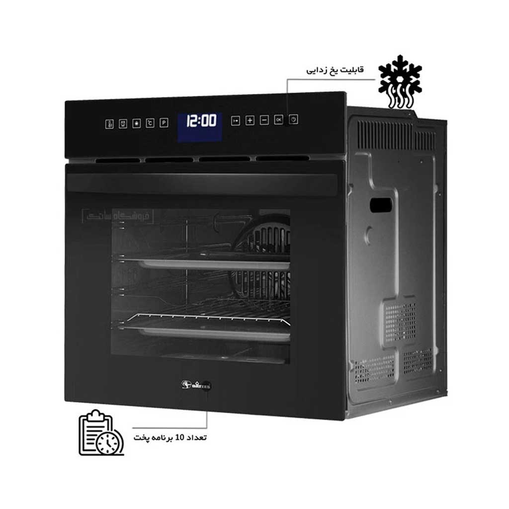 این فر با نمای شیشه سکوریت Ultra Clear و دستگیره آلومینیومی، جلوهای مدرن و مقاوم دارد. صفحه کلید تمام لمسی همراه با قفل کودک و قابلیت باز شدن آسان شیشههای داخلی برای نظافت، طراحی حرفهای و کاربرپسند را تکمیل میکند.
