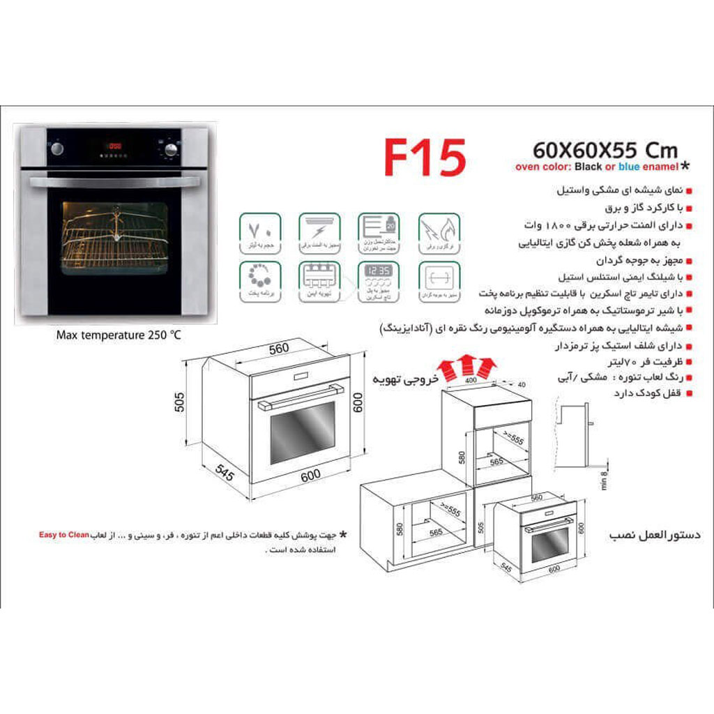 فر اخوان مدل F15 با ترکیب استیل و شیشه مشکی، طراحی مدرن و شیک دارد که جلوهای خاص به آشپزخانه میبخشد. استفاده از شیشه سکوریت علاوه بر زیبایی، دوام و مقاومت بالایی را تضمین میکند. کنترل ترکیبی لمسی و ولومی نیز کاربری آسان و انعطافپذیری بیشتری برای مصرفکننده فراهم میآورد.