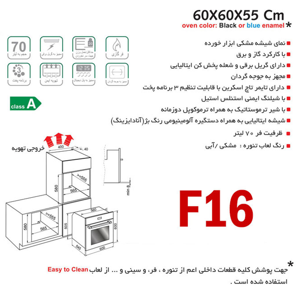 فر اخوان مدل F16 با ترکیب استیل و شیشه مشکی، طراحی مدرن و شیک دارد که جلوهای خاص به آشپزخانه میبخشد. استفاده از شیشه سکوریت علاوه بر زیبایی، دوام و مقاومت بالایی را تضمین میکند. کنترل ترکیبی لمسی و ولومی نیز کاربری آسان و انعطافپذیری بیشتری برای مصرفکننده فراهم میآورد.