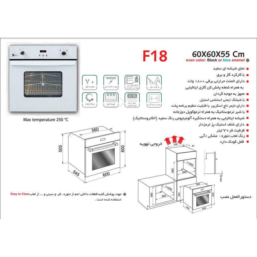 فر توکار اخوان مدل F18 برق و گاز با طراحی شیشه سفید، ترکیب انرژی برق و گاز، فن داکتی و ایمنی بالا، گزینهای مناسب برای خانوادههایی است که به دنبال دستگاهی اقتصادی و کاربردی هستند. این مدل با وجود محدودیتهایی مانند نبود برنامههای پخت اتوماتیک و حسگر پخت، همچنان به دلیل طراحی روشن، شعلهپخشکن گازی و ایمنی بالا، انتخابی قابل اعتماد برای آشپزخانههای امروزی محسوب میشود.