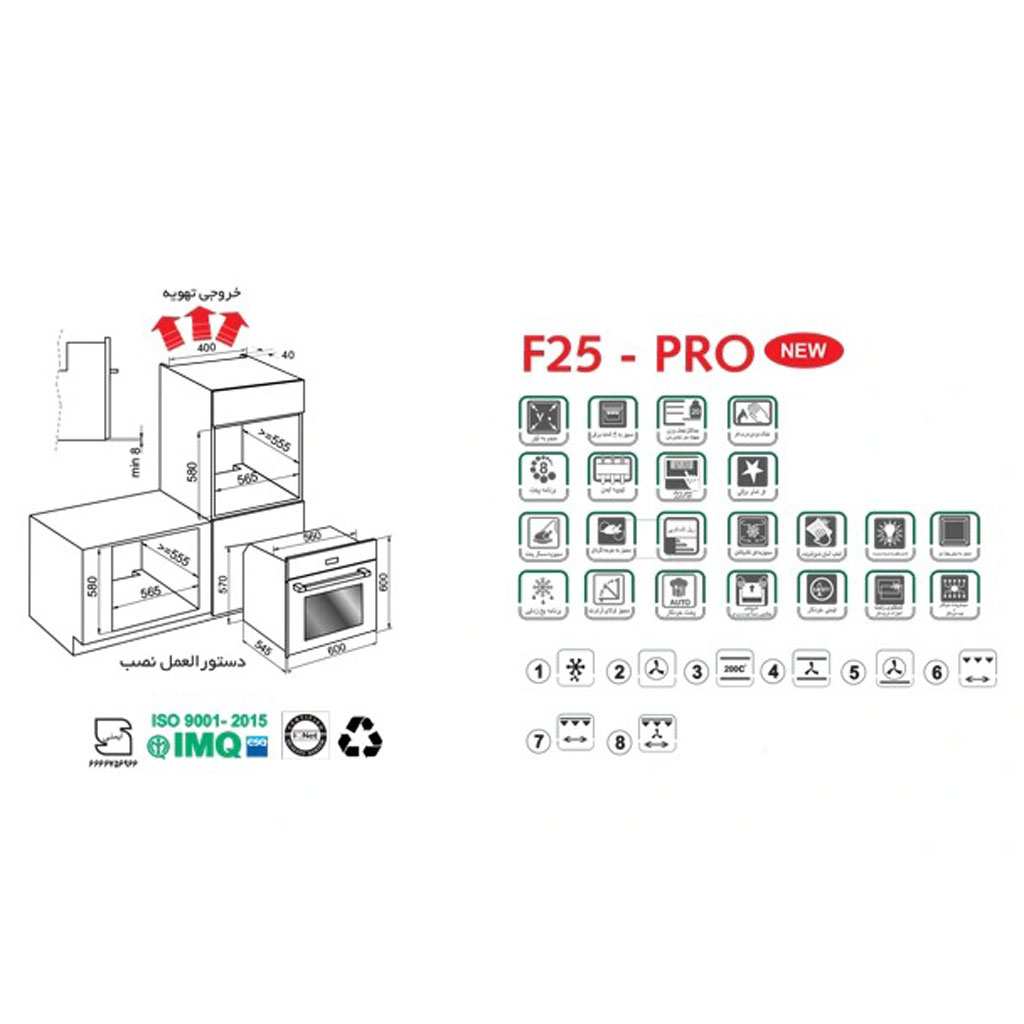 این فر با بهرهگیری از چهار المنت برقی، فن کانوکشن و گریل، توانایی ایجاد گرمای یکنواخت و پخت کامل غذاها را دارد. وجود 8 برنامه پخت متنوع و قابلیت برنامهریزی، امکان آمادهسازی طیف گستردهای از غذاها را فراهم میکند؛ از پخت نان و شیرینی گرفته تا برشته کردن گوشت و مرغ. حسگر پخت و تایمر دیجیتال، کنترل دقیق دما و زمان را ممکن میسازد و کیفیت نهایی غذا را تضمین میکند. ترکیب این قابلیتها، فر F25 Pro را به دستگاهی قدرتمند، ایمن و کارآمد تبدیل کرده است که نیازهای یک آشپزخانه مدرن را بهطور کامل برآورده میسازد.