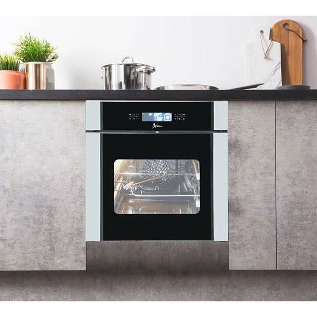 فر اخوان مدل F35 با ترکیب استیل و شیشه مشکی، ظاهری مدرن و لوکس دارد که بهخوبی با انواع دکوراسیون آشپزخانه هماهنگ میشود. استفاده از شیشه سکوریت مقاوم به حرارت علاوه بر زیبایی، دوام و مقاومت بالایی را تضمین میکند. پنل لمسی دیجیتال با طراحی ساده و کاربردی، تجربهای کاربرپسند و حرفهای را برای مصرفکننده فراهم میآورد. ابعاد استاندارد این فر نیز امکان نصب آسان در کابینتهای آشپزخانه را فراهم میکند و جلوهای هماهنگ و شیک ایجاد میکند.