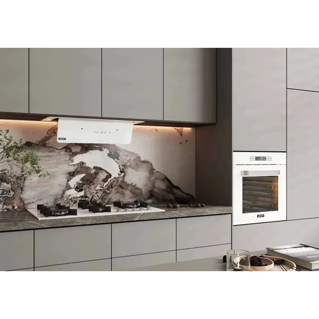 فر 1103 TURBO W با طراحی مدرن و بدنه شیشهای سفید، جلوهای شیک و هماهنگ با ستهای آشپزخانه مدرن ایجاد میکند. درب چهار جداره و ستونهای آلومینیومی مستحکم، دوام و ایمنی بالایی را تضمین میکنند. صفحه کنترل لمسی و نورپردازی دوگانه، کاربری آسان و دید کامل به فضای داخلی فر را فراهم میسازد.