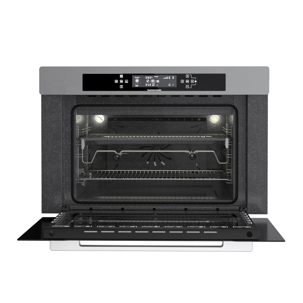 فر V901S با نمای مشکی استیل و طراحی مدرن، جلوهای لوکس و حرفهای به آشپزخانه میدهد. درب سه جداره با فناوری Low E علاوه بر ایمنی، مانع انتقال حرارت به بیرون شده و استفاده راحتتر و ایمنتر را فراهم میکند.