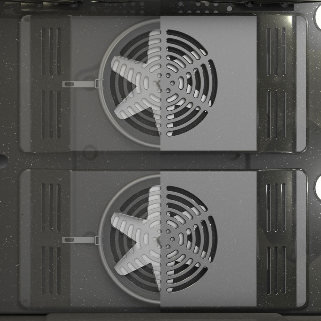دو فن کانوکشن برای گردش هوای داغ و تنظیم حرارت