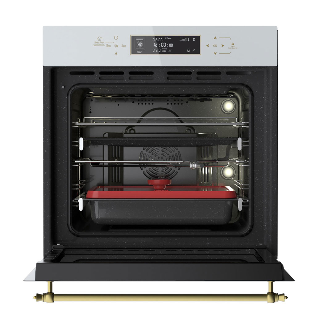 این فر با ظرفیت ۷۲ لیتر و ۱۷ برنامه پخت، قابلیت آمادهسازی انواع غذاها را دارد. وجود جوجهگردان، فن کانوکشن و بخارپز باعث میشود غذاها سریعتر، یکنواختتر و سالمتر پخته شوند. حسگر Meat Probe نیز دقت بالایی در پخت غذاهای گوشتی ایجاد میکند.
