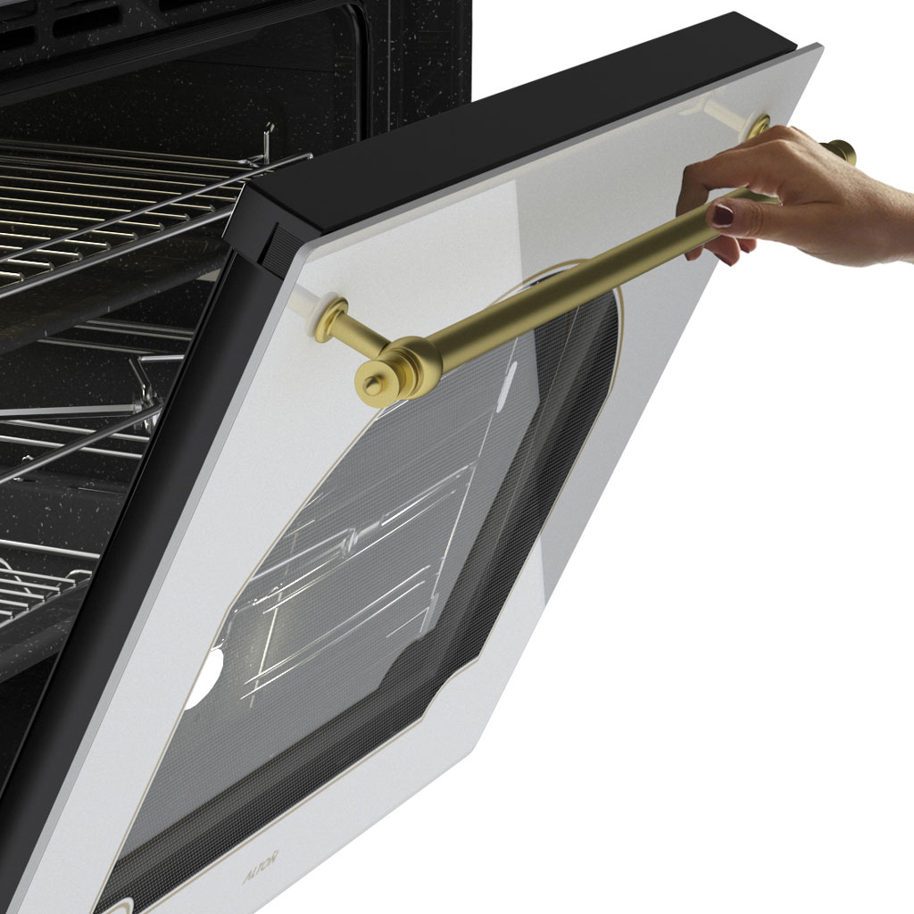 فر V506W با رنگ سفید و طراحی مدرن، جلوهای لوکس و هماهنگ با کابینتهای آشپزخانه ایجاد میکند. درب ۴ جداره مجهز به لولای آرامبند علاوه بر ایمنی، استفاده راحتتر و شیکتر را فراهم میکند.