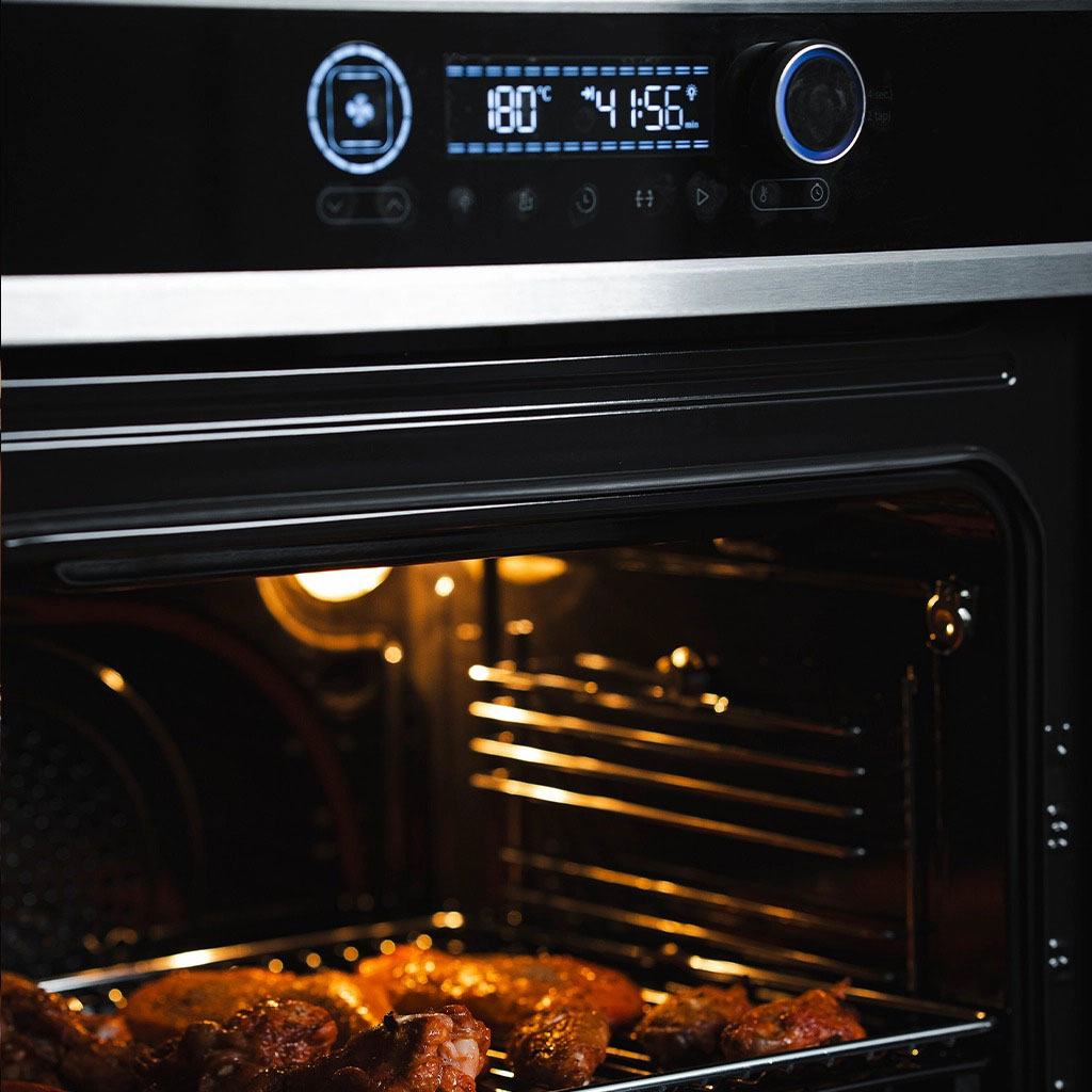 این فر با ظرفیت 65 لیتری و بیش از 13 برنامه پخت متنوع، توانایی بالایی در آمادهسازی انواع غذاها دارد. فن کانوکشن باعث میشود حرارت بهطور یکنواخت در فضای داخلی توزیع شود و کیفیت پخت غذاها ارتقا یابد. سنسور پخت گوشت امکان کنترل دقیق دما را فراهم میسازد و نتیجهای مطلوب در پخت انواع گوشت و مرغ ارائه میدهد. وجود جوجهگردان، سینی بخارپز و ریل تلسکوپی، انعطافپذیری بالایی در آمادهسازی غذاهای مختلف ایجاد میکند. علاوه بر این، سیستم ایمنی خودکار و قفل کودک امنیت استفاده را تضمین کرده و فن خنککننده اتوماتیک دمای بدنه را پس از پایان کار کاهش میدهد. لعاب داخلی Easy Clean نیز نظافت آسان را ممکن کرده و عمر مفید دستگاه را افزایش میدهد.