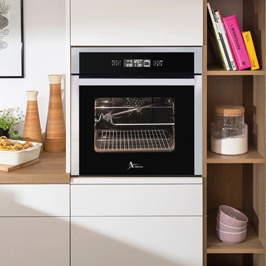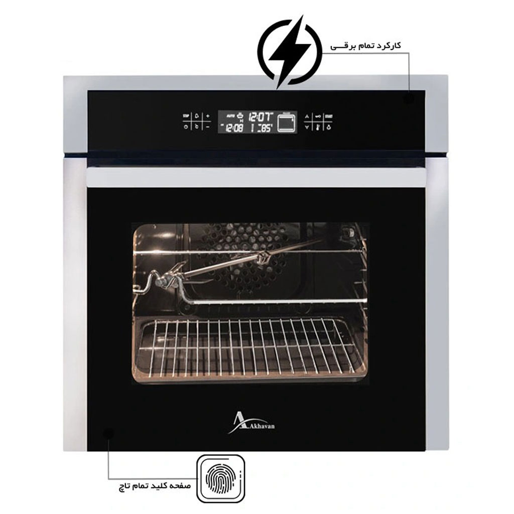 فر اخوان مدل F42 با نمای شیشه آیینهای و مشکی، طراحی مدرن و لوکس دارد. ابعاد استاندارد آن باعث میشود بهراحتی در کابینتهای آشپزخانه نصب شود. ترکیب شیشه سکوریت و کنترل لمسی جلوهای حرفهای و زیبا به آشپزخانه میبخشد.
