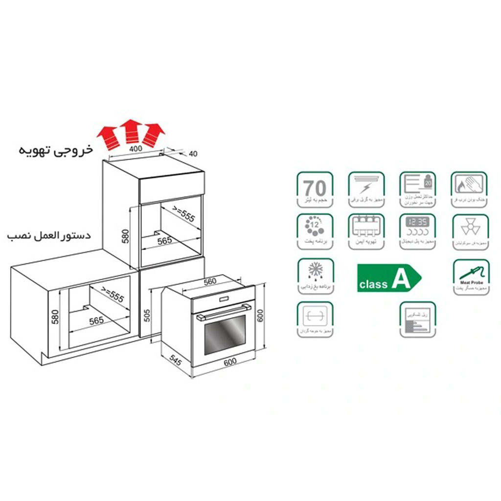 این فر با داشتن 4 المنت برقی، فن داکتی و 12 برنامه پخت، امکان آمادهسازی انواع غذاها را فراهم میکند. وجود حسگر پخت و تایمر دیجیتال باعث میشود غذاها با دقت و کیفیت بالا آماده شوند. سیستم یخزدایی و ترموکوپل دو زمانه نیز ایمنی و کارایی دستگاه را افزایش میدهد.