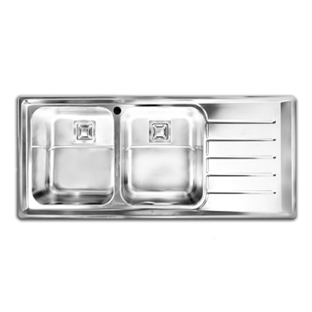 سینک 510 اخوان با طراحی آبشاری خطی بهترین هدایت آب بر روی سینی را دارد و از نوع توکار بوده که با دو لگن عمق بالای 22 سانتی متری و حاوی یک سینی خط دار افقی می باشد که از ورق استیل وارداتی ضد زنگ 304 ساخته شده است
