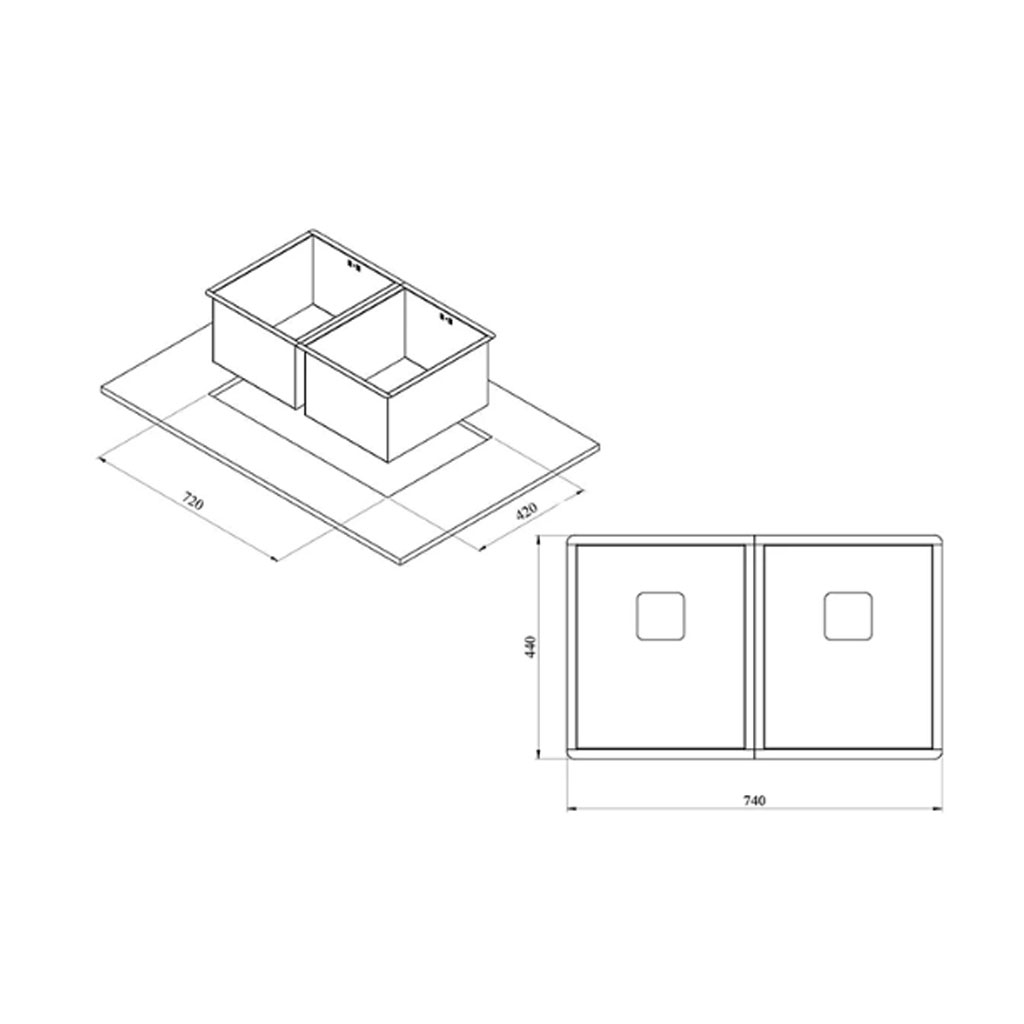 ابعاد سینک (cm) 44*74