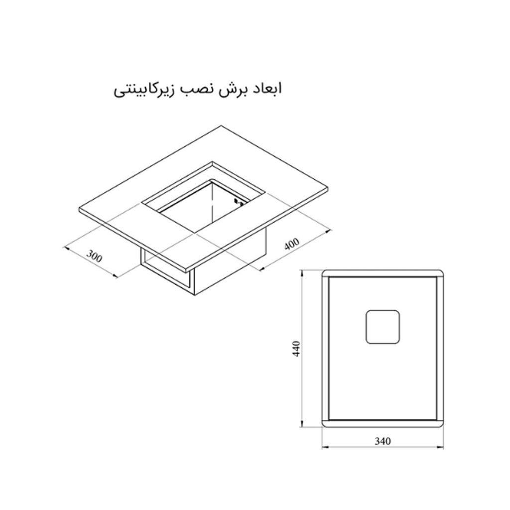ابعاد برش کابینت آندرمانت: 360 × 260 میلیمتر