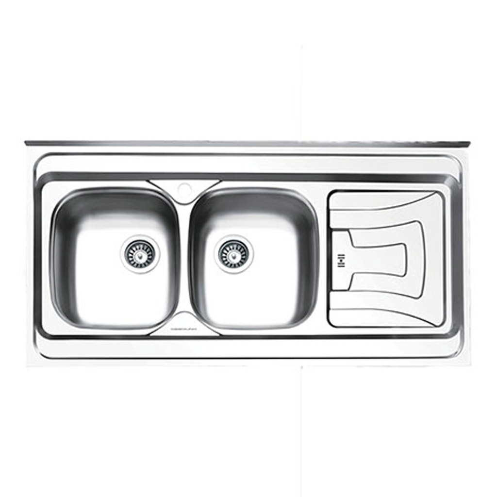 توضیحات کلی سینک ظرفشویی دیموند مدل 174 در ابعاد 60×120 سانتیمتر دارای 2 لگن و سینی - نیمه فانتزی نصب به صورت روکار و دارای نشان استاندارد ایران می باشد . اين محصول به صورت تكي به فروش نمي رسد. شما بايد حداقل 1 تعداد براي اين محصول سمت لگن :  لگن چپ لگن راست